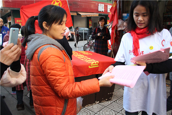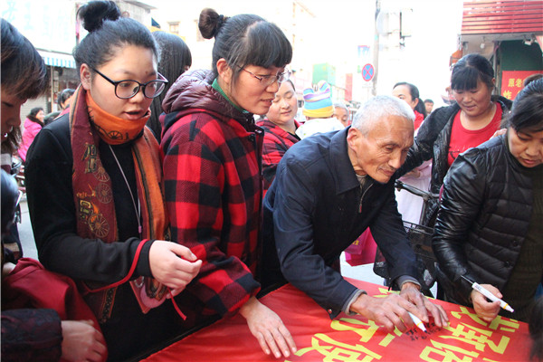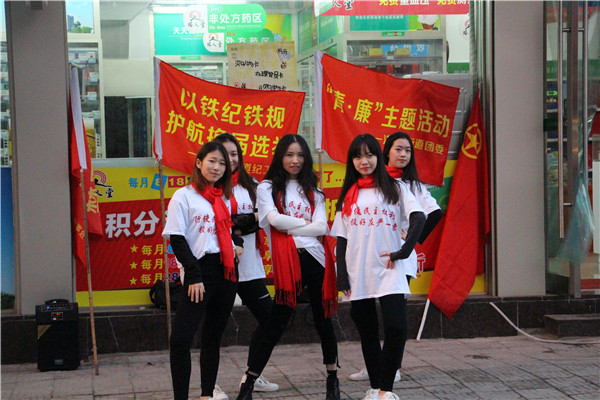 “青年作為家庭的基石,社會建設發展和凈化黨內政治生態的中堅力量,換屆選舉年里我們青年更要守住應有的責任,履行好義務,為換屆選舉的順利進行保駕護航……”隨即舞者在一組舞蹈動作后,展示出胸前印有“九個嚴禁九個一律”的內容標示!青春動感的步伐以及鮮明的宣傳標語,引來周邊群眾紛紛駐足觀看。