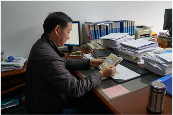 圖為海寧市綜合行政執(zhí)法局副局長卜志強正在學習紀律提醒手冊