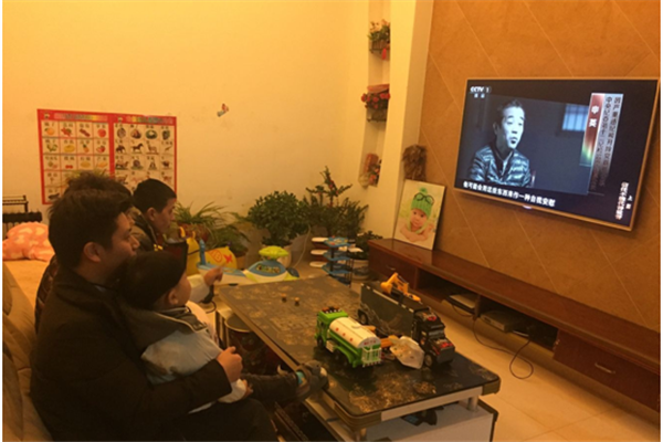 海寧市紀委派駐第七紀檢組干部孫晨一家人收看專題片