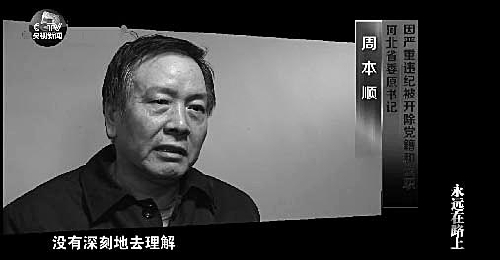周本順在電視專題片《永遠在路上》中出鏡悔罪 資料圖片