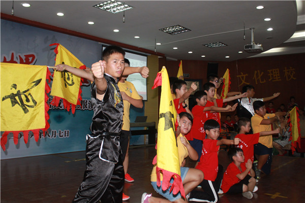 這是為期15天的“親情中華·漢語橋”、2016“青田之家”華僑新生代華文教育夏令營正在青田縣江南實驗學校舉行閉幕儀式,儀式上,來自11個國家的200多名華裔青少年進行了成果匯演。成果匯演在陣陣氣勢磅礴的鼓聲中正式開始,在老師的帶領下,手拿大刀的營員們開始有模有樣地進行了武術表演。緊隨其后的木偶戲、街舞、武術等表演,掀起了一陣陣高潮,精彩的表演得到了在場觀眾的熱烈掌聲。在現場,營員們的藝術作品如剪紙、書畫、篆刻等作品也緊緊地吸引了家長和嘉賓們的眼球。