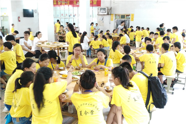 圖為小華僑在夏令營期間集體用餐,感受“大家庭”氛圍