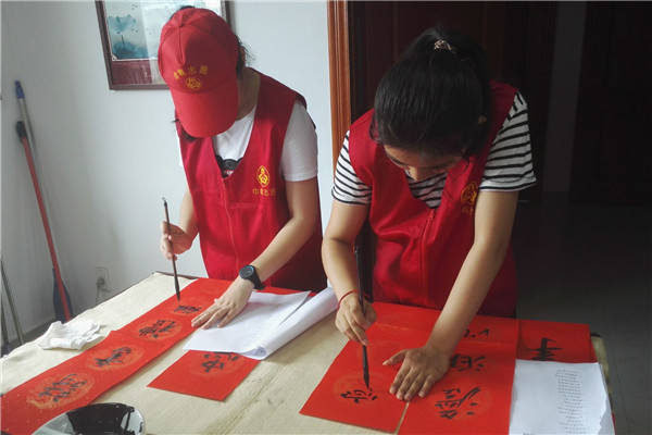 演講活動(dòng)后,志愿者們?cè)诂F(xiàn)場(chǎng)激情揮毫?xí)鴮憽凹绎L(fēng)對(duì)聯(lián)”,并組織派送,讓這些好家風(fēng)、好家訓(xùn)走入尋常百姓家庭中。(紹興市紀(jì)委)