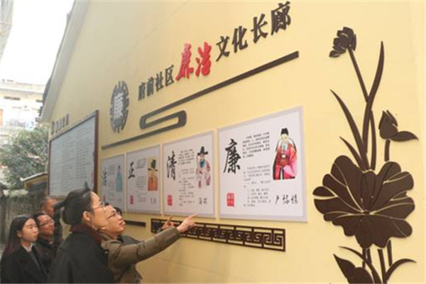 圖為居民群眾在廉潔文化長廊前駐足觀看
