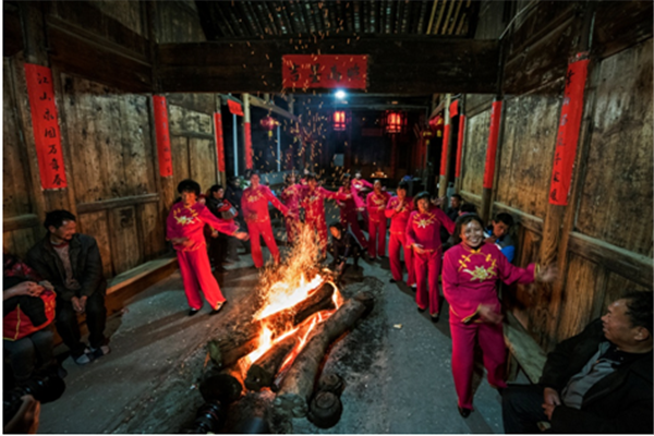龍泉市屏南鎮(zhèn)各村有著過年“燒火堆”的風(fēng)俗活動(dòng),在眾堂內(nèi)生起暖暖篝火,全村村民歡聚一堂,村民們圍著火堆載歌載舞,感受著年味,十分熱鬧。
