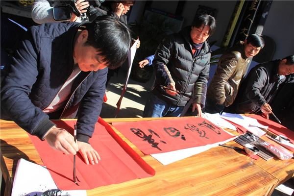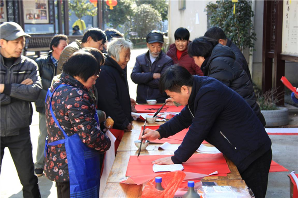 臨近歲末,新昌縣鏡嶺鎮巖泉村甄完祠里人來人往,熱鬧非凡。這里在干什么呢?原來是新昌縣文聯、縣書法家協會的書法家們來到甄完故里廉政文化教育基地,在甄完的銅像前潑墨揮毫,將甄氏二十六條祖訓寫成春聯,送給附近村民。