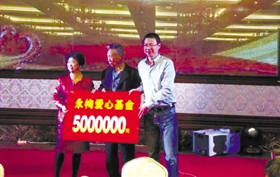 今年4月6日是胡永娟、趙沛栒夫婦倆50周年金婚之喜,由于兩老年輕時家里經(jīng)濟條件差,沒有舉辦婚禮,兒女們早早的就在琢磨著要為父母舉辦一場熱熱鬧鬧的金婚宴席,可在胡永娟夫婦心里,卻有著一個比金婚致喜更為重要的心愿,他倆一直想成立一個愛心基金,幫助僑界、社會上更多需要幫助的人,“我們倆的心愿一經(jīng)提起,得到兒女們的大力支持,齊心協(xié)力決定捐資500萬元,以我和老頭子兩人的名字成立永栒愛心基金,圓我們心中多年的愿望”,回憶起當(dāng)晚的場景,胡永娟滿臉是幸福的笑容。