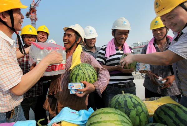 烈日炎炎市總工會為一線職工送清涼 圖片來源:寧波文明網