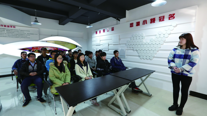 指導老師鮑芳芳介紹,思源文化教育實踐基地確立了"人人參與,實踐育人"的育人理念,強調學生通過多種方式與途徑參與慈善活動。比如在思源超市不僅可以購物攢積分,還可以參加實踐服務獲得相應積分,用積分按照10比1的比例兌換錢款,以自己的名義捐給思源基金。