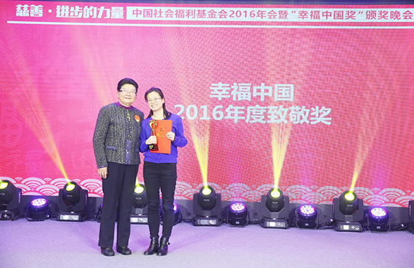 顧秀蓮為愛心企業頒發幸福中國·2016年度愛心企業獎