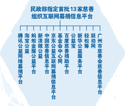 2016年9月1日,慈善法正式實施,網(wǎng)絡(luò)慈善被正式納入法治調(diào)整范疇。之后不久,經(jīng)民政部遴選指定,13家網(wǎng)絡(luò)募捐平臺成為首批官方認定的互聯(lián)網(wǎng)募捐信息平臺,標志著網(wǎng)絡(luò)募捐規(guī)范化監(jiān)管的開始。
