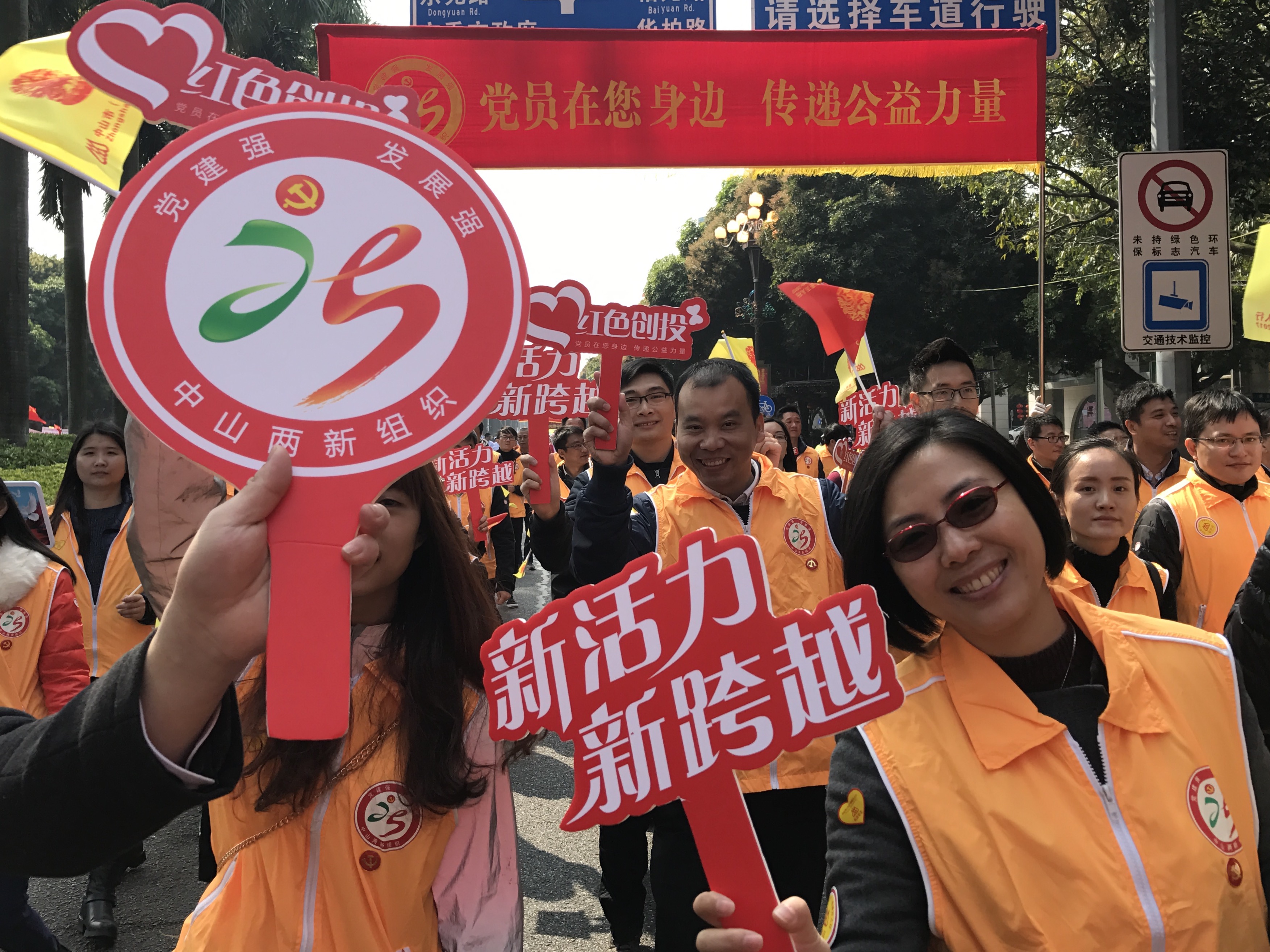 近年來,中山市委著力加強基層黨組織的建設,以黨建引領發展,黨的組織和黨的工作在兩新組織中的覆蓋不斷擴大,“黨建就是生產力”成為眾多企業的共識,黨員的先鋒模范作用、黨組織的戰斗堡壘作用在各條戰線上都突顯出來。慈善萬人行作為中山市一年一度最重大的活動之一,自然少不了兩新組織黨員的身影。春節前,招募兩新組織黨員志愿者參與萬人行巡游的公告一出,100個名額迅速被“秒殺”,最終在市兩新組織黨建卡通形象代表“靚靚”、“新新”的帶領下,組成了這支活力四射的百人方隊。