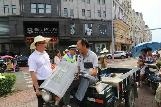 馬路上,金政一行每發現不文明的交通行為,就立即上前勸導。“電動車上坐這么多人很不安全,不能拿生命開玩笑啊!”“私家車的司機和乘客都要養成系安全帶的好習慣。”“開車的時候打電話、玩手機都是存在安全隱患的,要專注駕駛”……“交通勸導員”們針對機動車亂停車、機動車交通陋習、非機動車亂騎行、行人亂穿馬路、非法車輛上路等十大交通違法行為進行勸導,老百姓紛紛表示支持這項活動,做到文明出行。