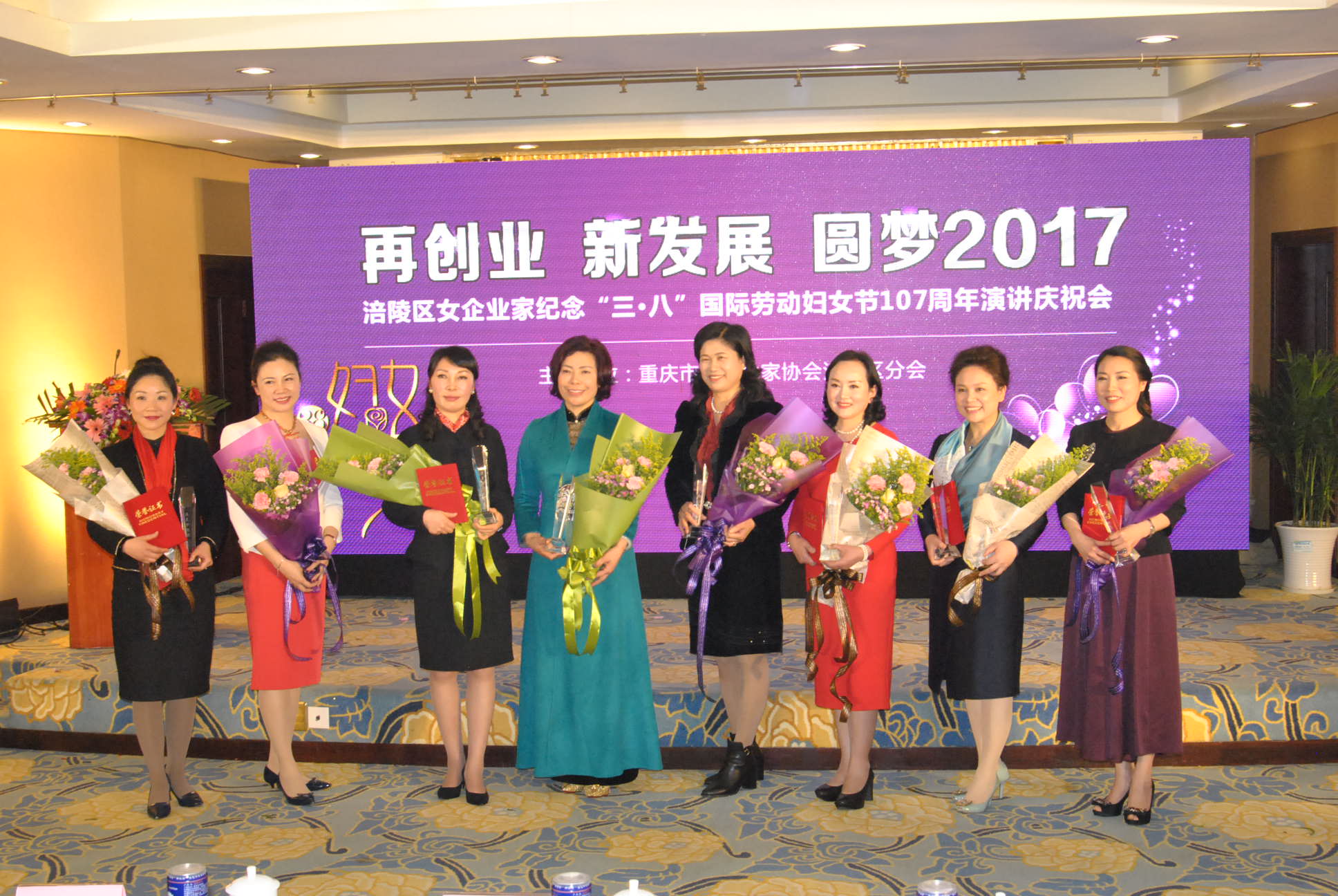 3月6日下午,重慶涪陵區女企業家協舉行紀念“三八”國際勞動婦女節107周年“再創業,新發展,圓夢2017……”演講慶祝會。