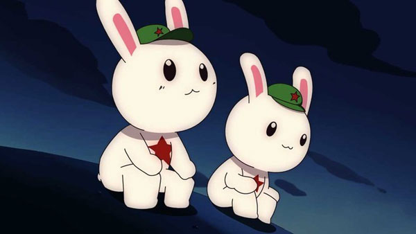 在看到動畫《那年那兔那些事兒》后(以下簡稱《那兔》),齊欣開始不斷向身邊的朋友“安利”(網絡流行語,意為推薦——記者注)一只頭戴綠色軍帽的兔子。視頻中,彈幕接連不斷地飄過網友對國家的祝福。