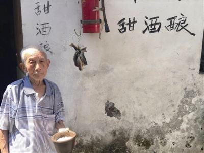 現(xiàn)在的人,真好。這個小郭,可以叫我太公了,我93歲,他25歲,我大他好幾輪,他幫我賣甜酒釀,真是我的福氣了。