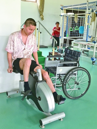 程永林每天堅(jiān)持做5小時(shí)康復(fù)訓(xùn)練,希望早日重返工作崗位。資料照片