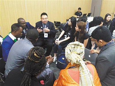 2016年5月,韓國慶州第六十六屆聯合國新聞部非政府組織會議上,徐鵬以國際青年企業家導師身份給年輕人解惑。