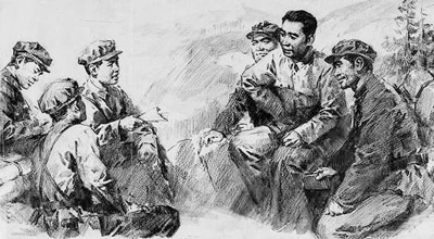 周恩來參加黨小組活動。雷德祖繪