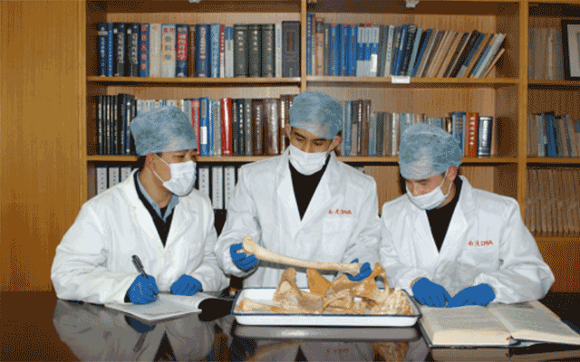 賈東濤與同事一起學習交流骨語鑒定
