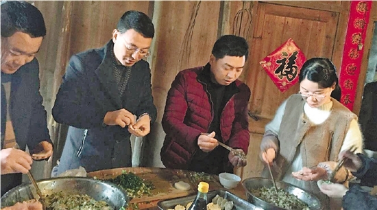 聯盟成員們為留守老人包水餃。