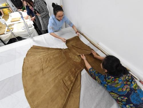 2008年才建立的這個(gè)紡織考古實(shí)驗(yàn)室就在社科院考古所的后樓里,幾間屋子并不大,她和她的弟子們就在這略顯逼仄的空間里,同時(shí)進(jìn)行著江西明代寧靖王夫人吳氏墓服飾修復(fù)、江西贛州慈云寺塔出土繪畫(huà)、遼寧葉茂臺(tái)遼墓紡織品文物修復(fù)等工作。經(jīng)年累月才復(fù)原出的那幾件令人驚艷的湖北江陵馬山一號(hào)楚墓的棉袍也在這里展示著,越來(lái)越多的人到這里參觀,越來(lái)越多的孩子想跟著她學(xué)習(xí)紡織考古。
