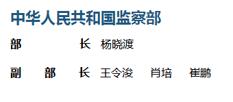 至此,監察部已形成“一正四副”的新班子格局。除部長楊曉渡外,其他3位副部長分別是王令浚、肖培、崔鵬。