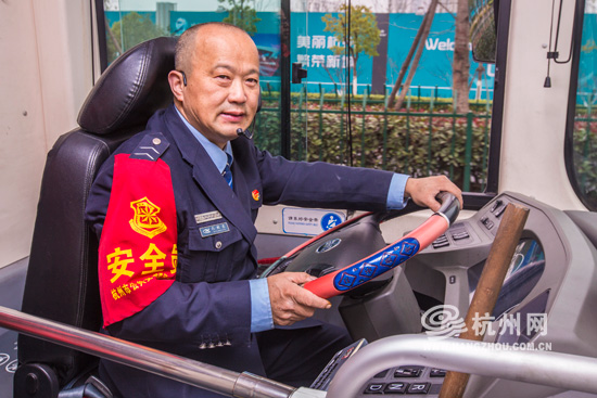 上午8點半,杭州東站西廣場公交站,孔勝東師傅穿著深藍色的工作服,系著領帶,戴上“安全員”紅袖章走進調度室,開始做出車前的準備工作。他腳上穿著的是一雙黑色布鞋,“穿布鞋開車腳感好,起步穩?!笨讕煾禈泛呛堑卣f,他總是喜歡穿布鞋,舒服,皮鞋太硬了。