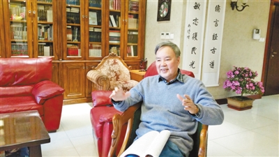 拜訪溫儒敏教授那天,北京的風格外大。我們剛出電梯門,溫教授就迎了出來。走進家里,撲面而來一團暖意,還有氤氳的書卷氣——客廳中的一整面墻都是書。