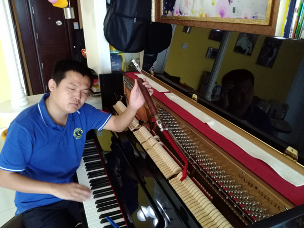 22歲時,他頂著所有反對的聲音,放棄推拿,改行學鋼琴調律,成為了一名稀缺的盲人調音師。
