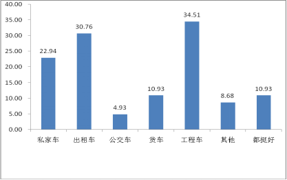 隨著時代的進步,科技的發展,人們生活水平的提高,私家車的出行量也越來越大,隨之帶來的交通問題也日益凸顯,交通擁堵加劇。調查顯示,臺州市區40.24%的民眾日常主要出行方式是私家車。道路車輛擁擠加之駕駛者的文明素質不一,造成了"禮讓行人"的盲區。調查結果顯示,1200個成功樣本剔除"不清楚"的人數后,34.51%的民眾發現工程車在斑馬線前出現未禮讓行人現象最多,其次是出租車。
