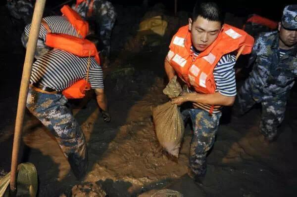 大家先用木頭在底部搭起隔離墻,再用塑料薄膜覆蓋,然后用沙包固定,最后再用泥土壓實。隨后,余姚市供銷聯社運來了搶險物資,余姚市水利局派來專家指導,預備役民兵也趕來支援。在大家的努力下,缺口被一點點填住,但因為泥土濕軟,挖掘機施工難度極大,不時發生側翻或故障,嚴重影響堵缺速度。見情況危急,晚上,海軍駐姚某部官兵趕來增援。直到9月17日凌晨2時左右,缺口終于被堵住,排除了險情。