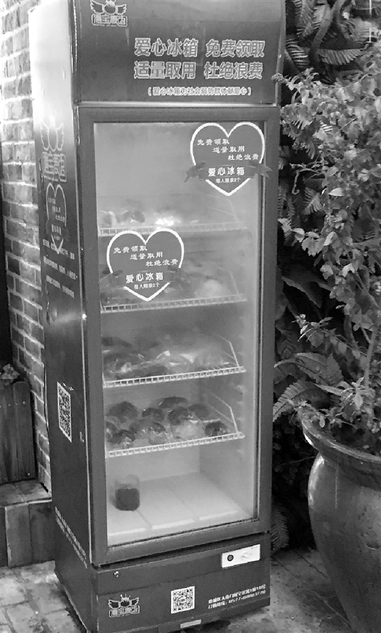 記者注意到,“愛心冰箱”上寫著“適量取用,杜絕浪費,每人限量2個”的字樣。
