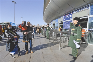 北京西站一執勤戰士哨位旁向偶遇父母家人敬軍禮