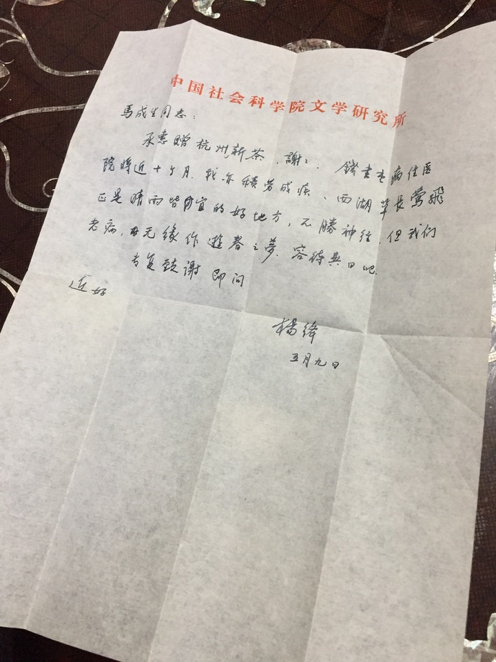 此后,馬成生和錢鍾書又恢復了聯系,他們常常書信往來,每隔一段時間,馬成生還會給老師寄些西湖龍井茶去。80年代,馬成生還再度前往北京,拜訪過老師。