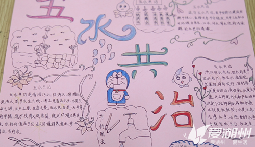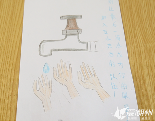 其他年級的學生也加入進來,低年級段學生負責編寫各種節水、愛護水環境的口號,中年級段學生負責制定家庭節水計劃,并將這些成果向家人或朋友進行宣傳,呼吁全社會參與“五水共治”、保護水資源。
