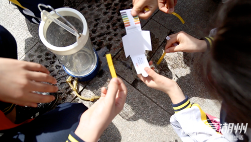 近日,王元玲又帶著學生來到了狀元街,調查這條曾經觀測過的市河。取水采樣,觀測水體的渾濁度、肉眼可見物,測試ph值……