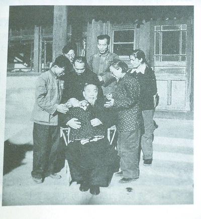 1959年秋的一個周末,陳智超夫婦帶著剛出生不久的兒子超英,來到北京興化寺街5號看望祖父。陳垣抱著曾孫端坐中央,陳樂素夫婦、陳智超夫婦等環立在側,又留下一張全家福。