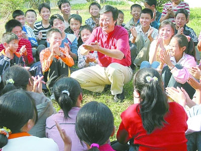 徐榮耀在松木坪中學給學生講傳統故事。資料圖片