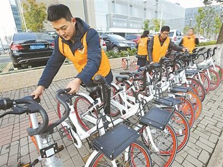 共享單車整齊擺放 丁安 孫燕攝