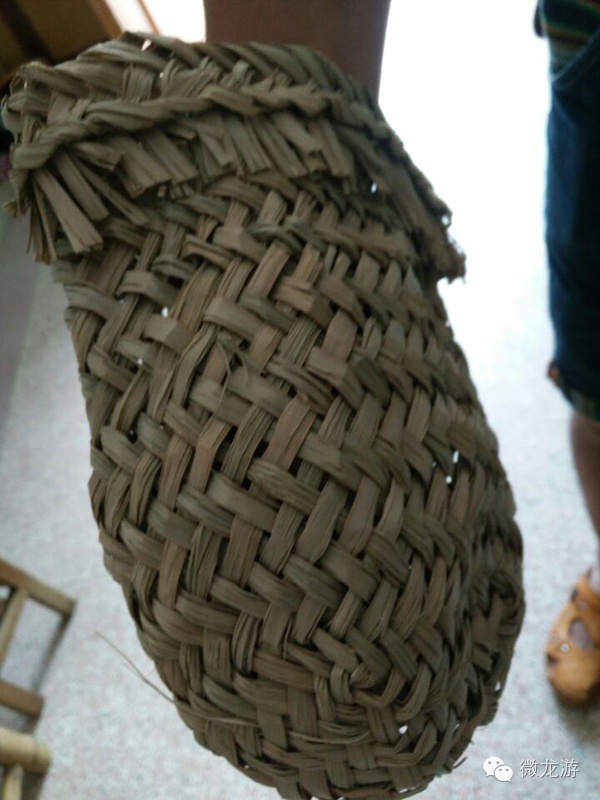 “大的能煮一斤米,小的有煮半斤和二兩的。”吳永生打開一打大蒲包,小編看到一打有10套,一套有5只。蒲包底編織成長方形,周邊漸次散開,形成肚囊狀,頸口編織成麻花狀,便于收口。