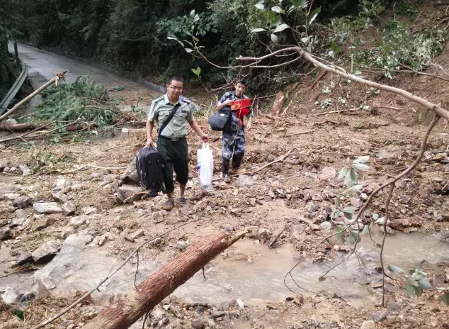 臺(tái)風(fēng)“莫蘭蒂”的肆虐,導(dǎo)致萬山到東源的公路多處塌方,汽車無法通行。9月17日是新兵集合的日子,麗水青田萬山鄉(xiāng)人武部長潘炎和入伍新兵孫偉杰一起徒步下山,歷時(shí)3.5小時(shí),步行7公里……