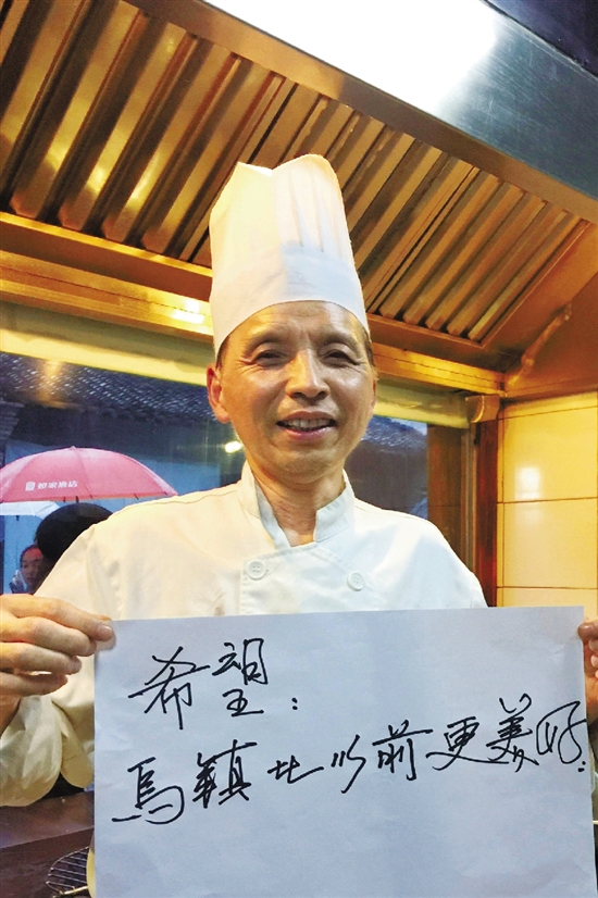 今年65歲生日,景區給他們一起過生日,毛阿龍感覺好溫暖。第三屆世界互聯網大會·烏鎮峰會馬上要開了,毛阿龍期待把溫暖傳遞出去。當然今年如果有大咖來買餅,毛阿龍想聊上兩句。