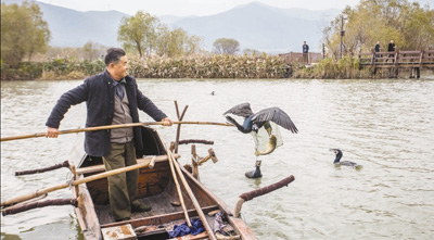 濕地修復后,湖蕩魚蝦增多,當地居民仍保留鸕鶿捕魚的傳統。長興縣委宣傳部供圖