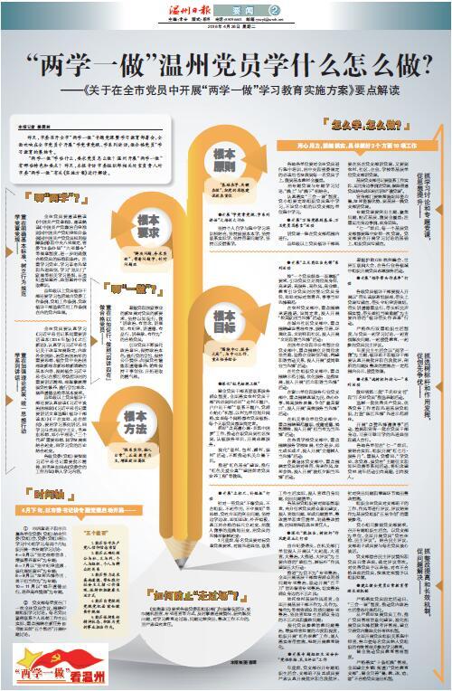 1、精心組織實(shí)施。2016年4月25日,市委召開(kāi)"兩學(xué)一做"專(zhuān)題黨課暨學(xué)習(xí)教育部署會(huì),市委書(shū)記徐立毅作專(zhuān)題黨課。印發(fā)"兩學(xué)一做"學(xué)習(xí)教育總體實(shí)施方案,專(zhuān)門(mén)制定農(nóng)村(社區(qū))、兩新組織、國(guó)有企業(yè)等六個(gè)領(lǐng)域的指導(dǎo)方案。制定全市"兩學(xué)一做"宣傳報(bào)道方案,在市縣新聞媒體開(kāi)設(shè)專(zhuān)欄專(zhuān)題,開(kāi)設(shè)溫州"兩學(xué)一做"專(zhuān)題教育網(wǎng)站和微信公眾號(hào)。