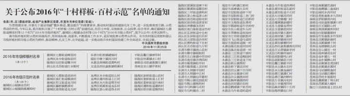 開(kāi)展"十村樣板·百村示范"創(chuàng)建,挖掘和培育一批"可學(xué)、過(guò)硬、能復(fù)制"的先進(jìn)典型,全面推行"黨建聯(lián)盟"做法,發(fā)揮先進(jìn)村"強(qiáng)帶弱、點(diǎn)帶面"作用。2016年全市共創(chuàng)建"市級(jí)樣板村"12個(gè)和"市級(jí)示范村"120個(gè),創(chuàng)建"黨建聯(lián)盟"50個(gè)。