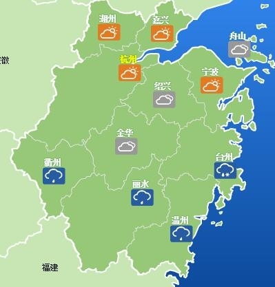 2月26日浙南地區多云,其它地區多云到晴。今天(2月24日)白天最高溫度:浙北地區8到10℃;其它地區5到7℃。