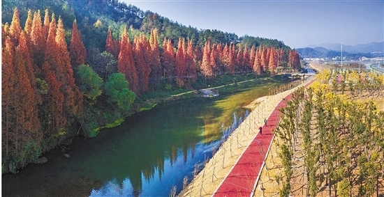 海寧華豐村白獰浜的兩岸,蜿蜒有致的休閑步道領著村民一覽河道風景。