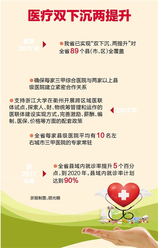 在浙江大地上,無(wú)論是山村還是海島,越來(lái)越多的老百姓在"家門口"就能享受到優(yōu)質(zhì)醫(yī)療服務(wù)。到2017年底,全省城市公立醫(yī)院普通門診量將進(jìn)一步減少,患者在縣域內(nèi)就診率將提升5個(gè)百分點(diǎn),到2020年,這一數(shù)字計(jì)劃達(dá)到90%。