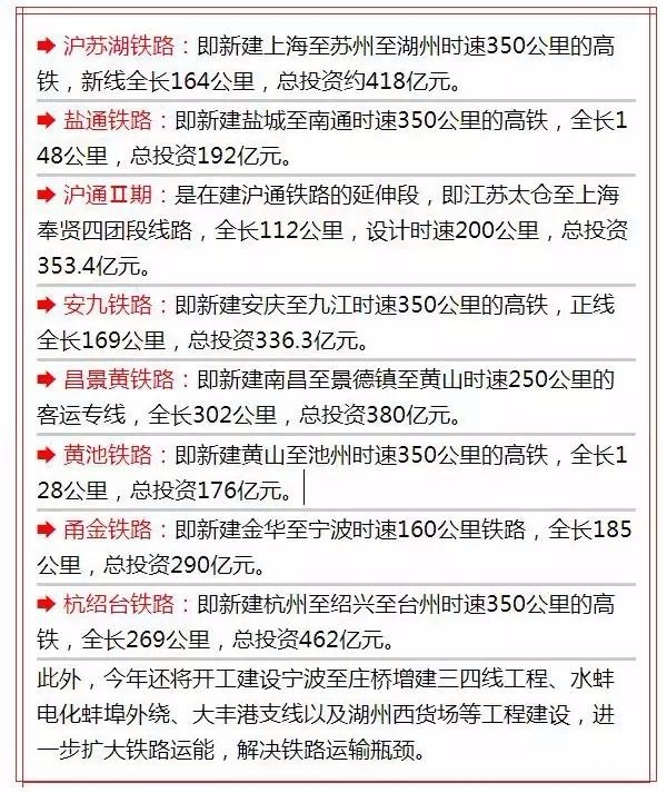 備受關注的滬蘇湖鐵路即新建上海至蘇州至湖州時速350公里的高鐵,新線全長164公里,總投資約418億元。